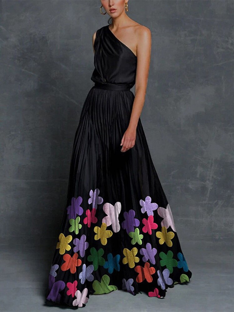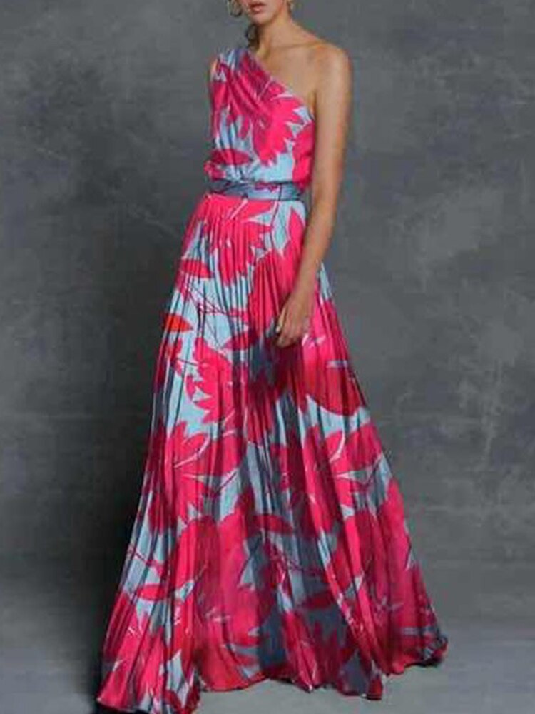Elegant One Shoulder Draped Beach Long Dress Women Vintage Popular Print Patchwork Party Maxi Dresses Casual Female Vestidos New