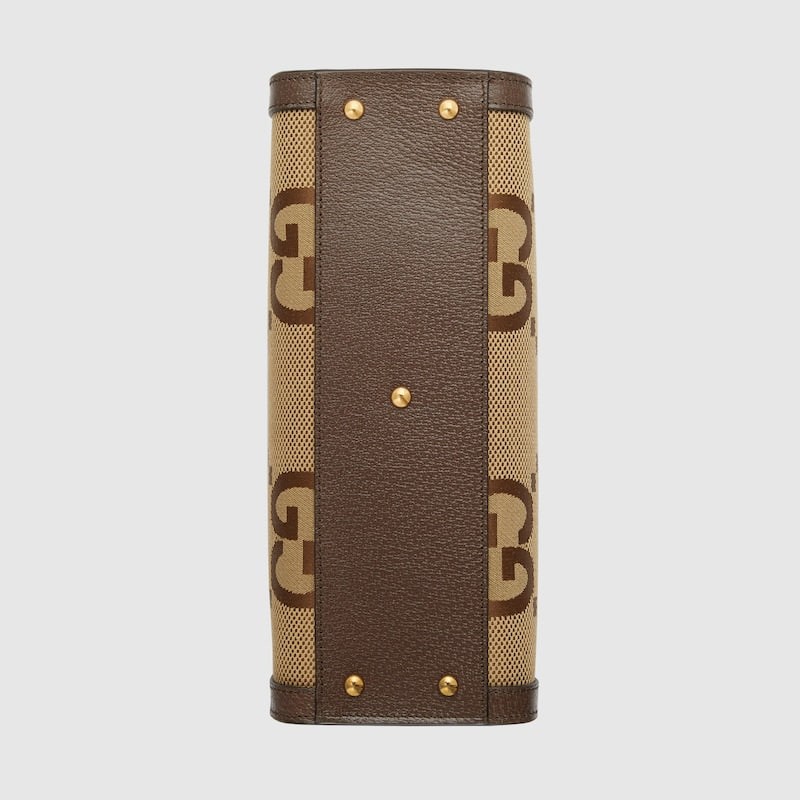 As an iconic symbol of the brand, logo elements continue to bring more new ideas to single products in novel and unique ways. Each logo contains the brand's unique historical heritage and value pursuit, and interprets the fashion aesthetic concept with charm. Each series uses a modern perspective to reinvent the old and bring forth the new, interpreting the brand identity through continuous changes and experiments. This double G pattern presents the classic double G monogram pattern in an exaggerated way that is different from the past, and vividly interprets a variety of ready-to-wear and accessories items in the "Aria-Fashion Aria" series. Gucci Diana small bamboo tote bag with brown leather trim.