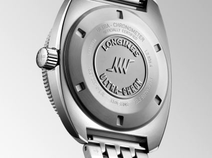 Table bottom: dense bottom, screw-down case back, engraved with the "Ultra-Chron" logo and the words "ULTRA CHRONOMETER officially certified"